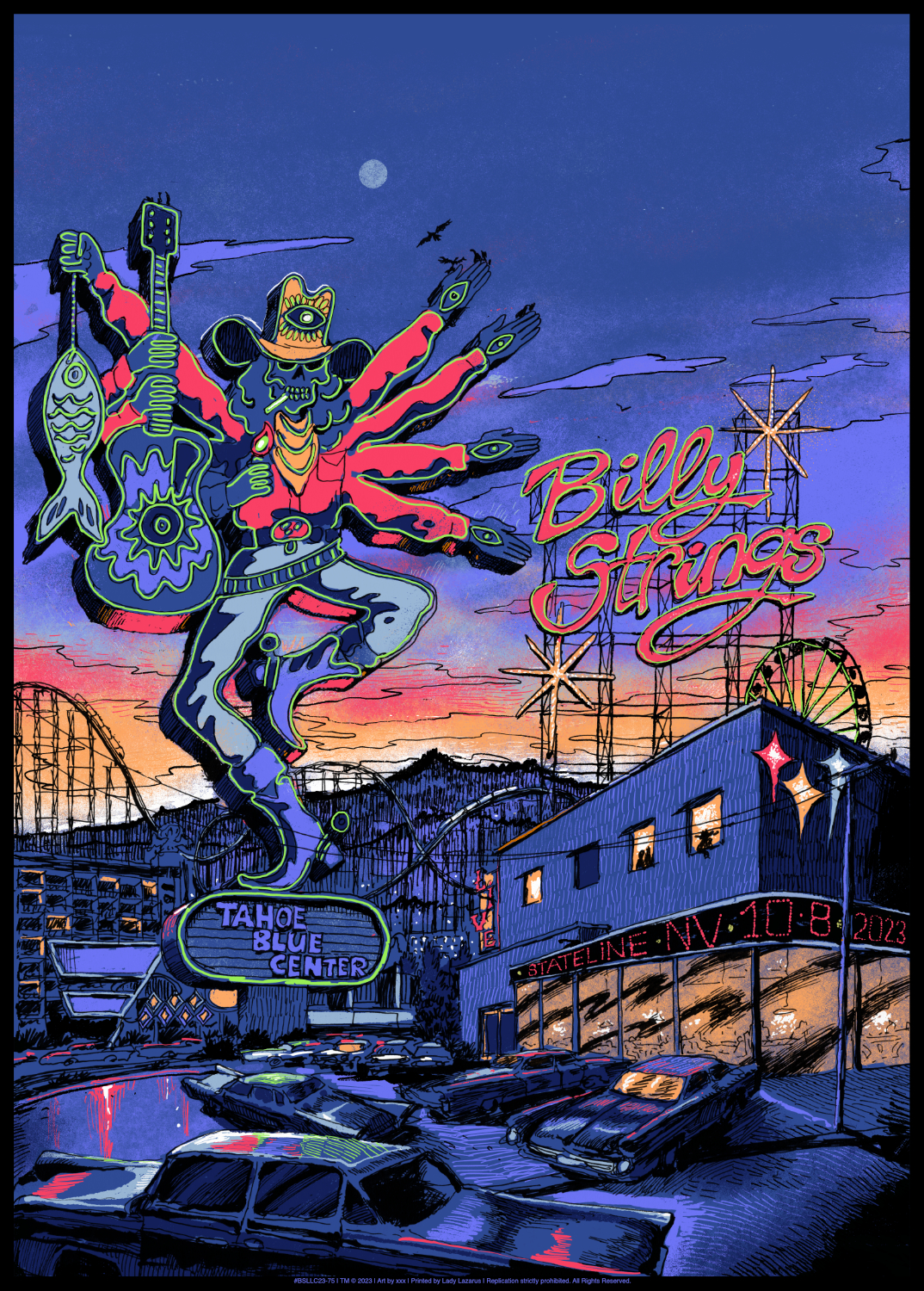 Concert poster created for Billy Strings at Lake Tahoe, NV. 8 October 2023