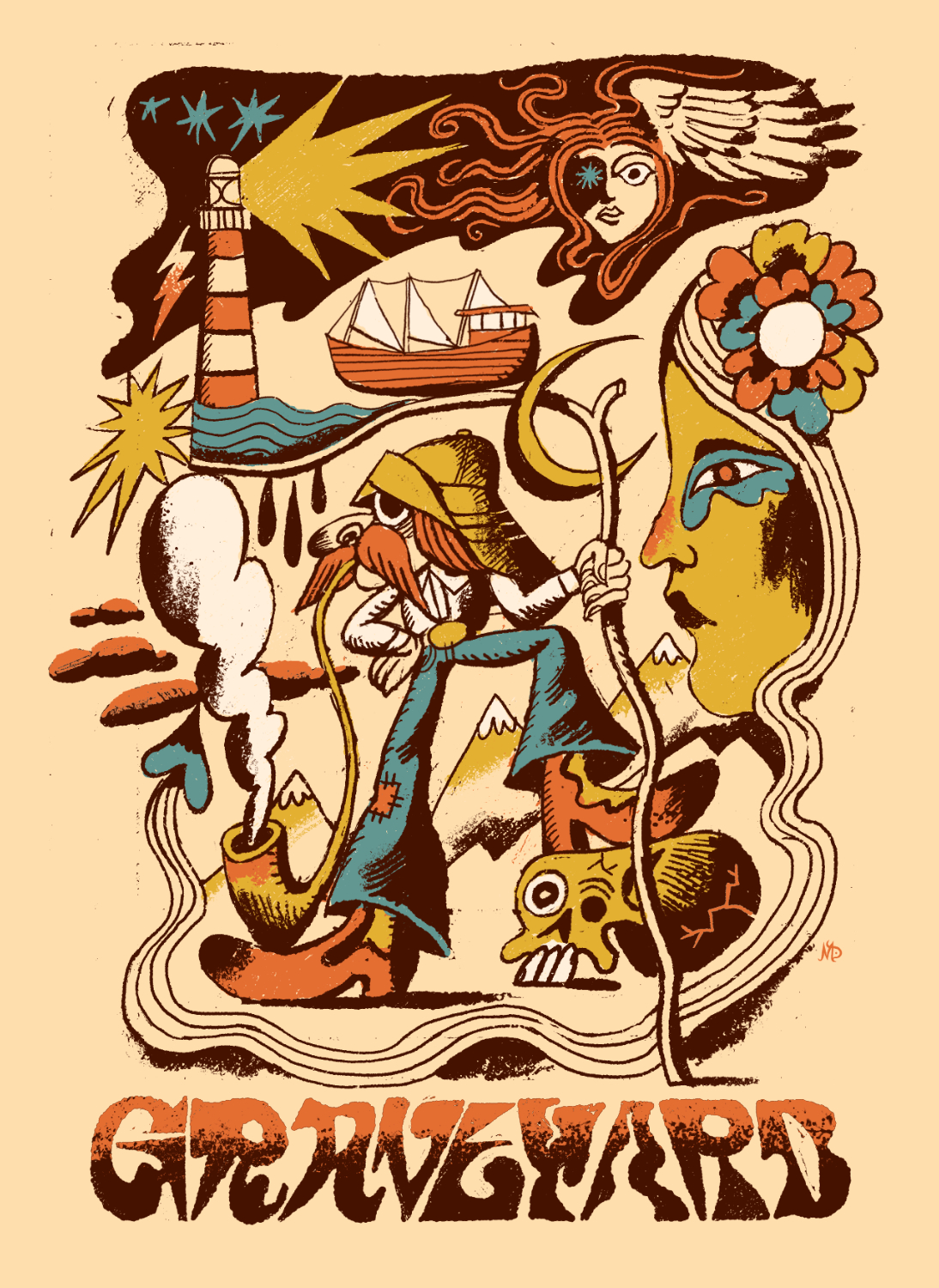 Personal work, screenprinted as poster. Also used by the psychedelic rock band Blues Pills