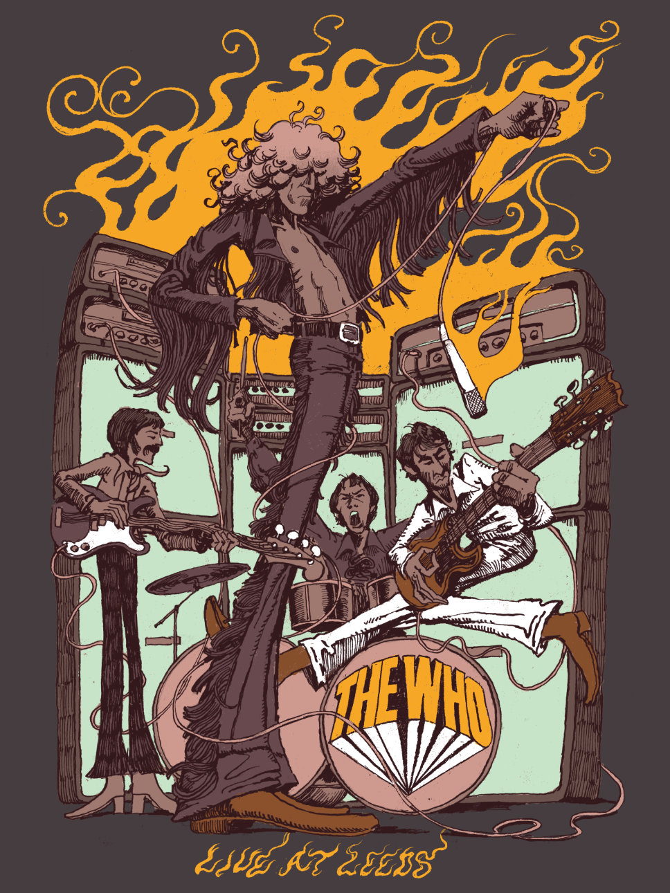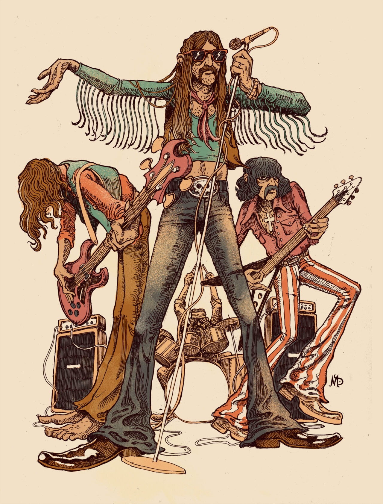 Illustration depicting an imaginary band from the 70’s. Originally created for Dali Speakers, and also screenprinted as a poster