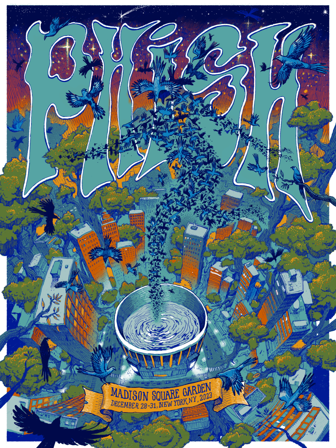 Poster for Phish’s 4 night 2023 New Year’s event at Madison Square Garden, NY