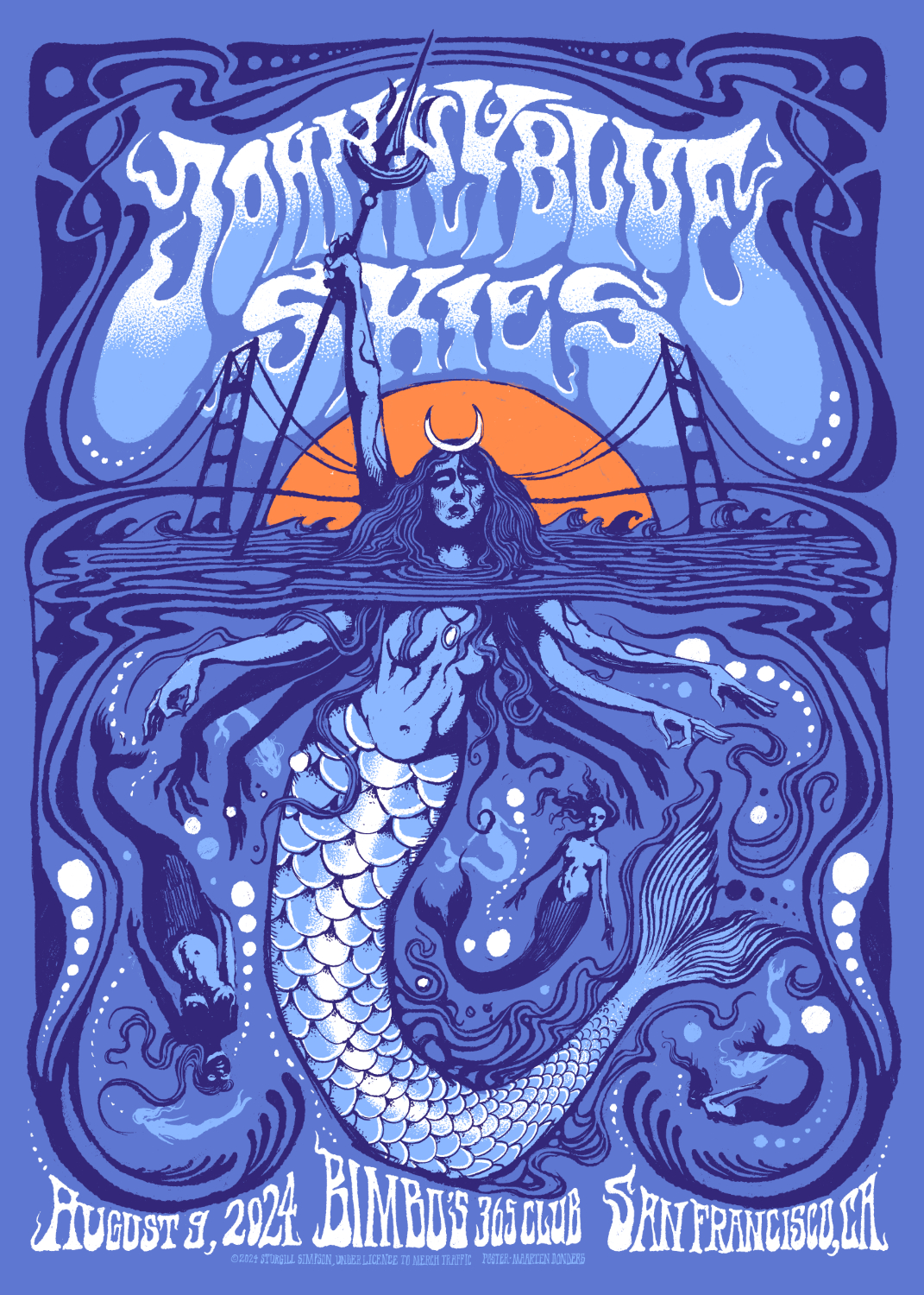 Poster created For Johnny Blue Skies a.k.a. Sturgill Simpson’s show at Bimbo’s 365 Club, August 9 in San Francisco